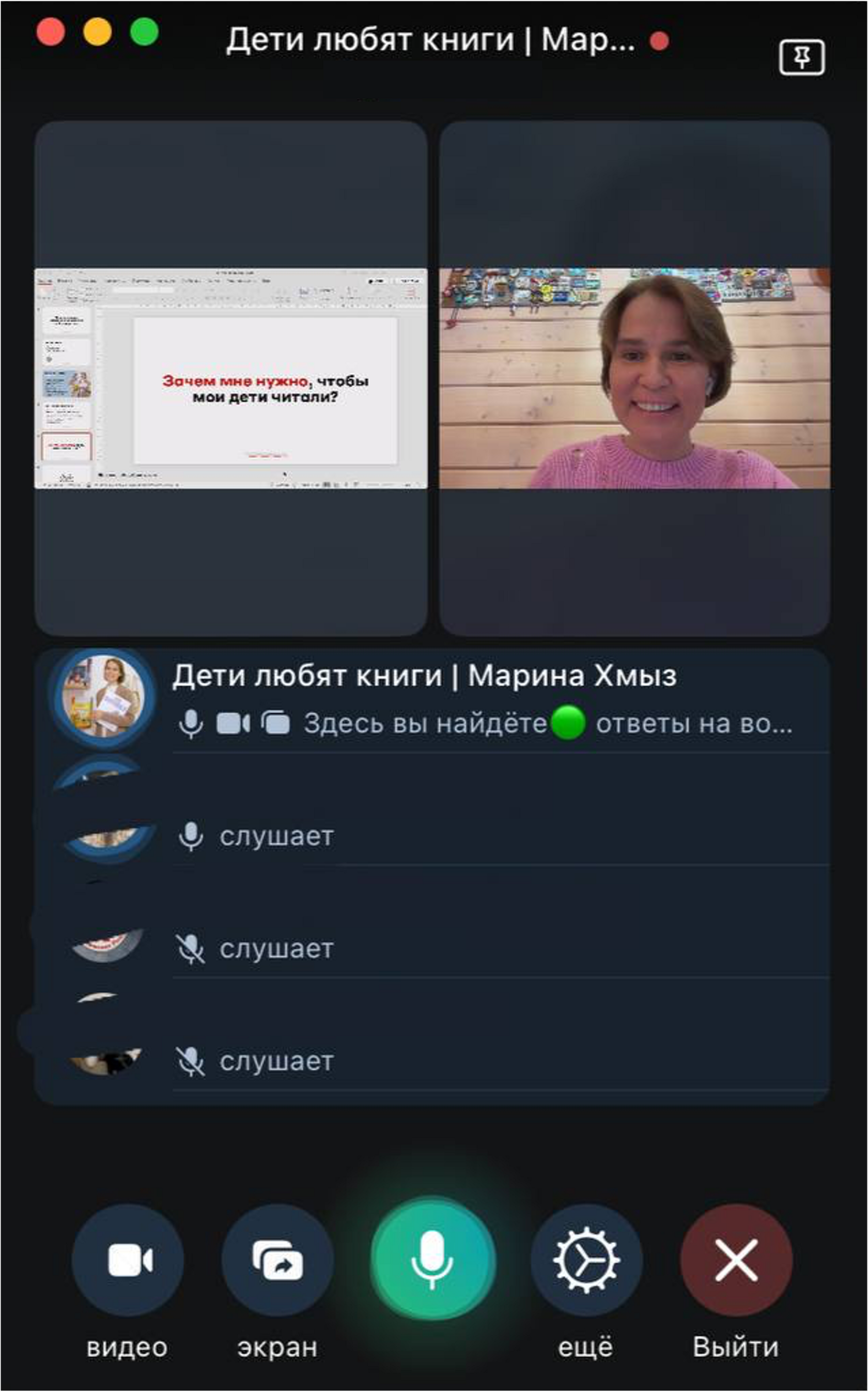 Telegram-канала "Дети любят книги"Спикер мероприятий, посвященных семейному чтению